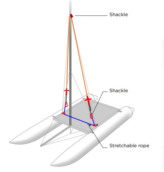 一人乗り用のトラピーズ(空中懸垂装置)の完全セットです。ボートを傾かせずにより強い風でも帆走を可能にします。最大体重100kgまで対応。ライフベストは含まれていません。